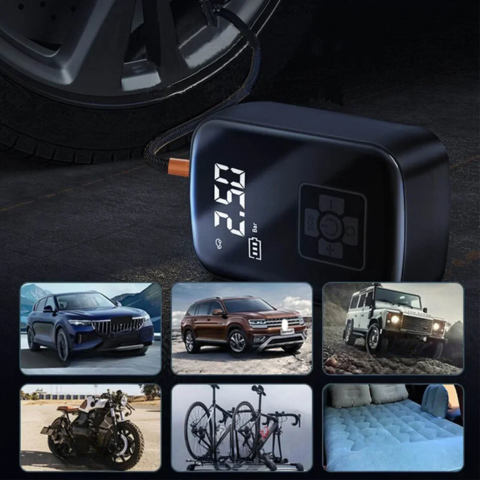 Ez a hordozható légkompresszor gyors és pontos felfújást kínál integrált digitális kijelzőjének köszönhetően. Vezeték nélküli kialakítása ideálissá teszi az útközbeni használatra, biztosítva, hogy a gumik mindig a megfelelő nyomáson maradjanak.